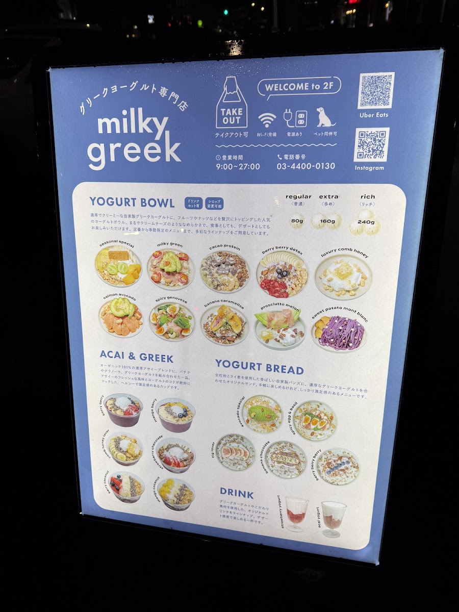 cafe milkygreek麻布十番shisha Menu